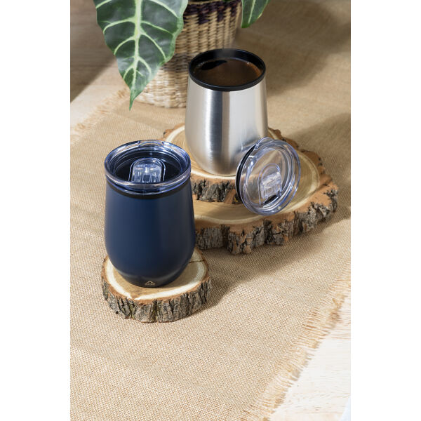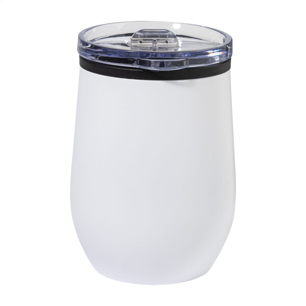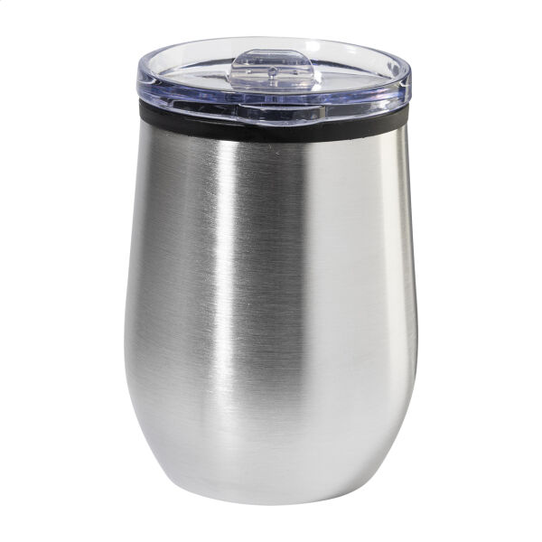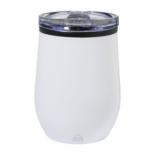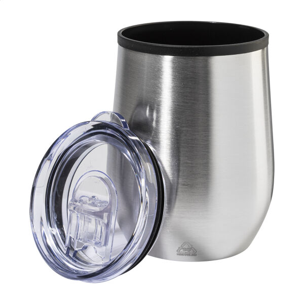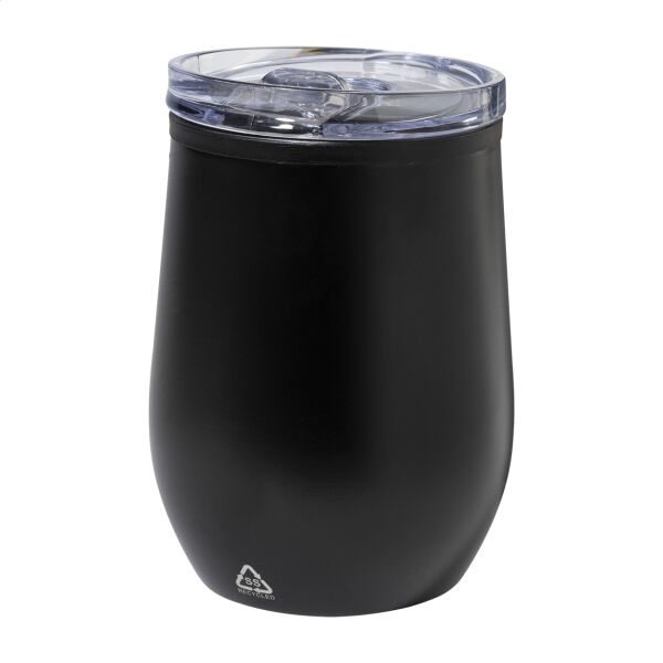 Dubbelwandige, gerecyclede roestvrijstalen thermokop met PP binnenkant en PS drinkdeksel. 350 ml.